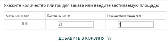 Расчет количества можно произвести либо вручную, либо скачав приложение. Размер плитки указывается около названия в сантиметрах, либо в описании товара (см.рис). В данном случае, имеем площадь 4 кв.метра, расчет производиться автоматически, просто указываем квадратуру, а количество плиток рассчитается автоматически. Помощь в рассчете могут оказать наши сотрудники, к которым вы сможете обратится либо по телефону, либо посредством онлайн чата.